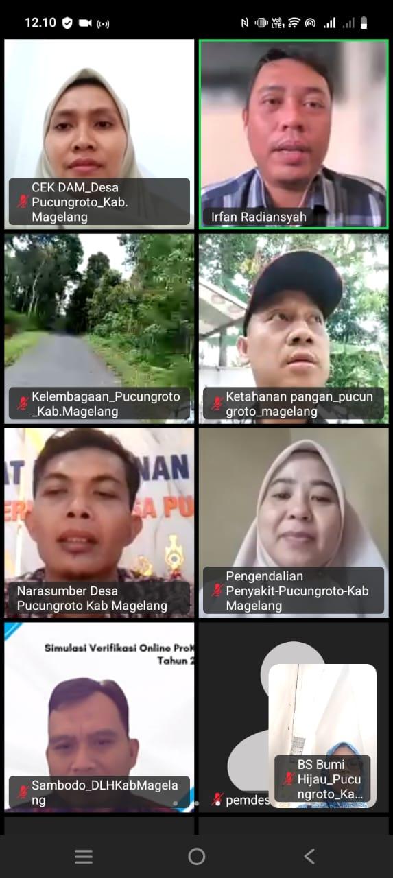 Pucungroto, 19 Agustus 2025 - Upaya pelestarian lingkungan dan penguatan ketahanan terhadap perubahan iklim di Desa Pucungroto, Kecamatan Kajoran, Kabupaten Magelang, mendapat pengakuan nasional melalui pelaksanaan Verifikasi Nominasi Program Kampung Iklim (ProKlim) Utama oleh Kementerian Lingkungan Hidup dan Kehutanan (KLHK) Republik Indonesia. Verifikasi dilakukan secara daring oleh tim verifikator Deputi Bidang Pengendalian Perubahan Iklim dan Tata Kelola Nilai Ekonomi Karbon KLHK, sementara peserta lokal mengikuti kegiatan dari Kantor Kepala Desa dan tempat yang ditentukan.